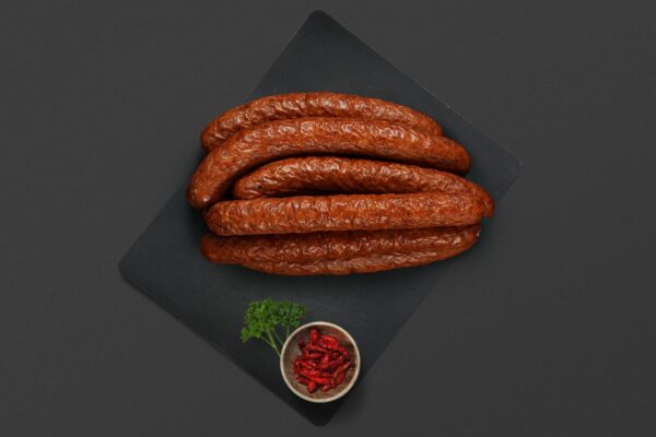 Cârnați din carne de porc, fierți și afumați în membrană naturală comestibilă.