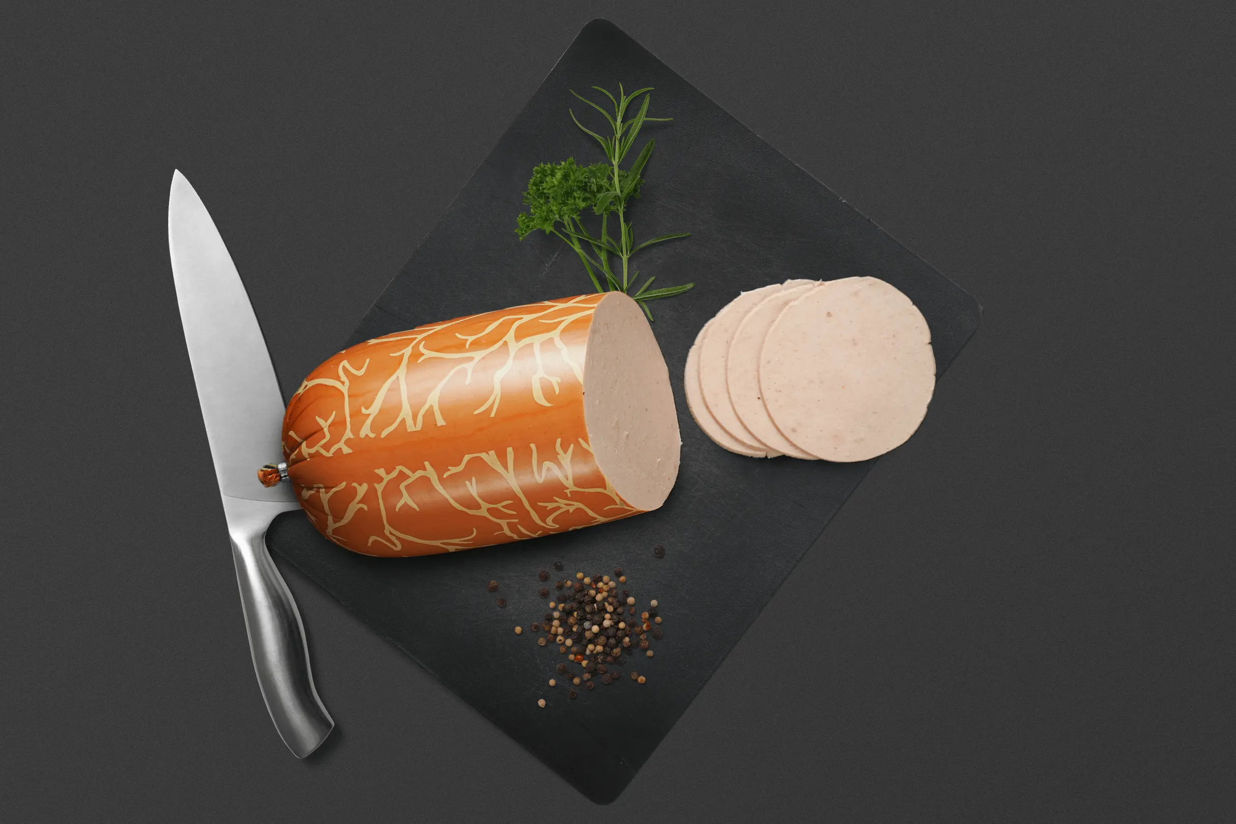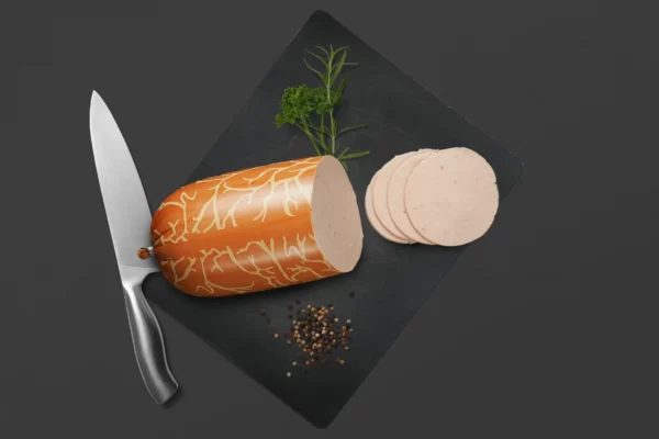Parizer din carne de porc fiert și afumat în membrană necomestibilă.