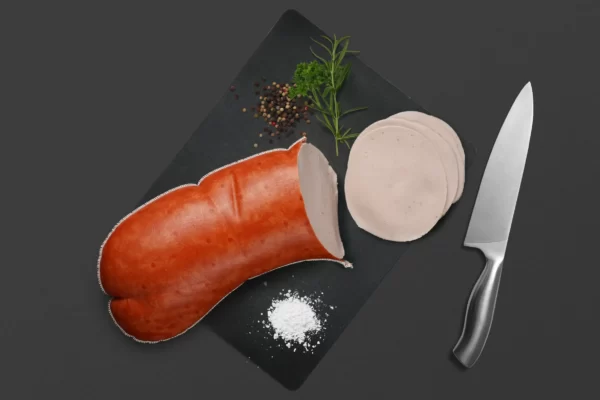 Parizer din carne de porc fiert și afumat în membrană necomestibilă.