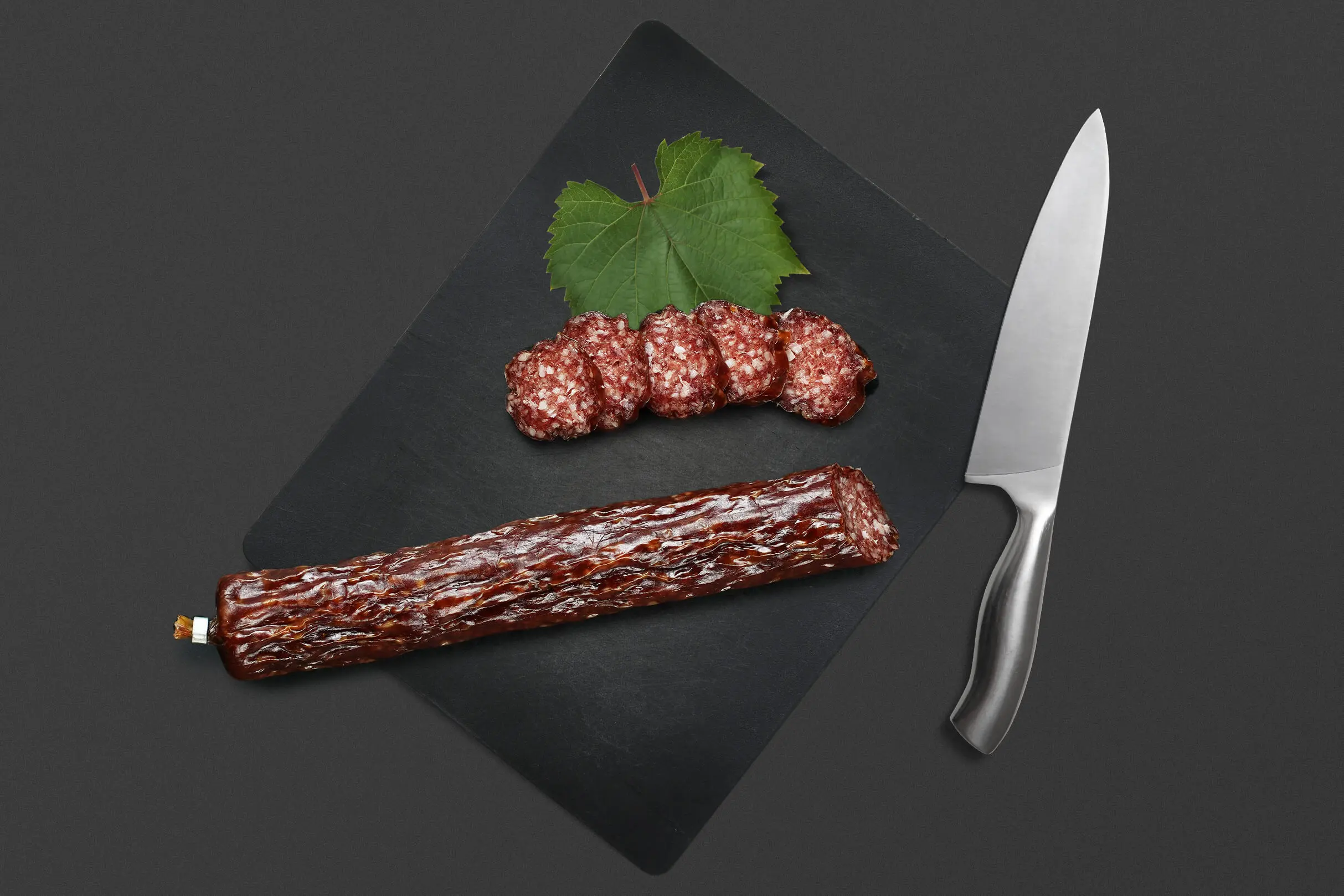 Salam din pulpă de vită și pulpă de porc, crud uscat.