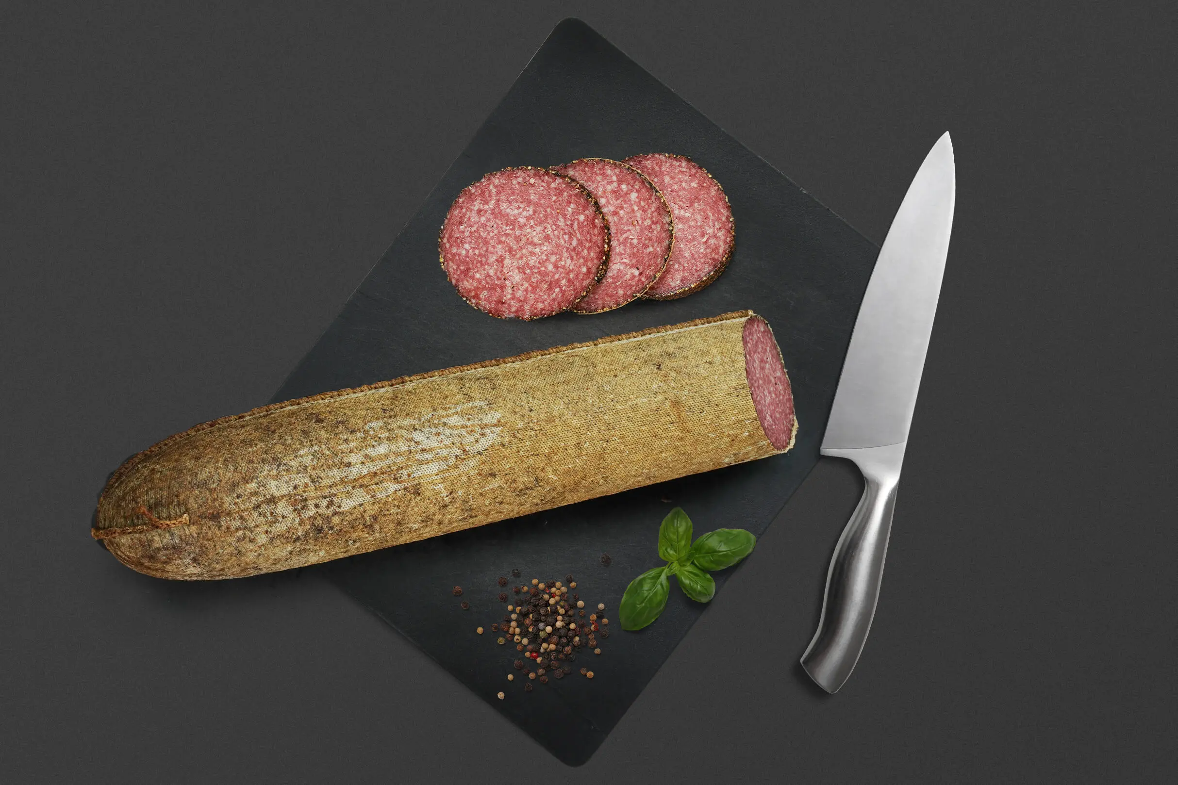 Salam german în crustă de piper